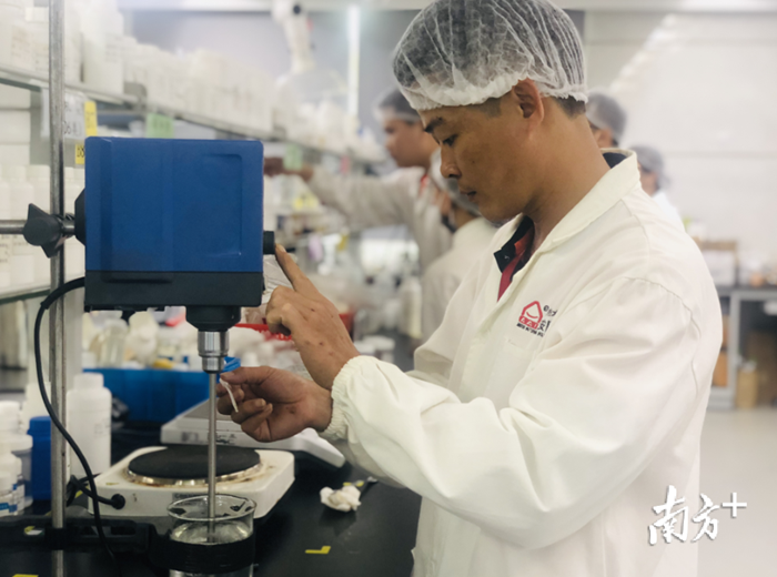 佛山市安安美容保健品有限公司實(shí)驗(yàn)室內(nèi)正在進(jìn)行一系列產(chǎn)品研發(fā) 湯曉微 攝