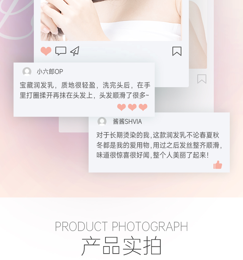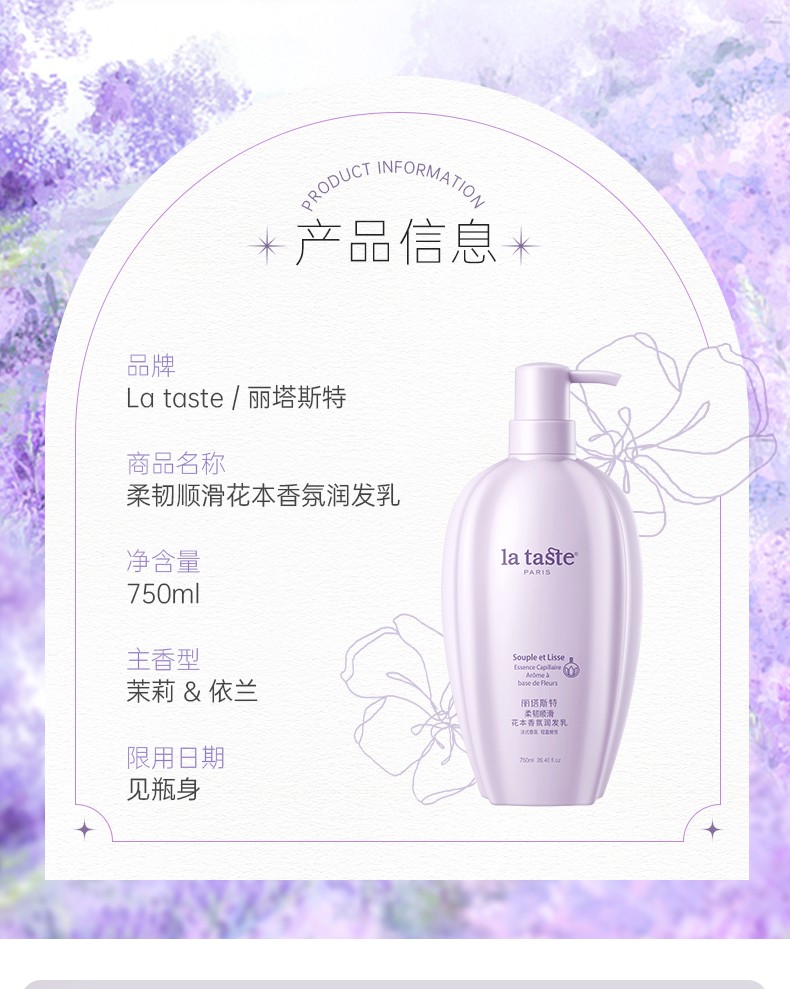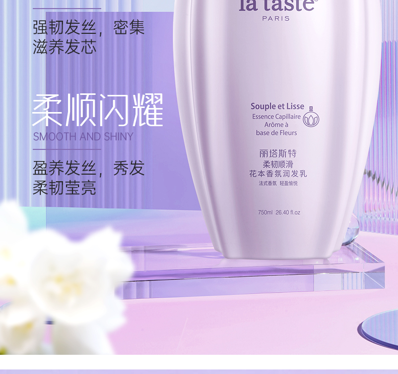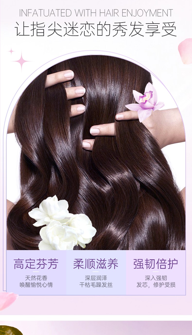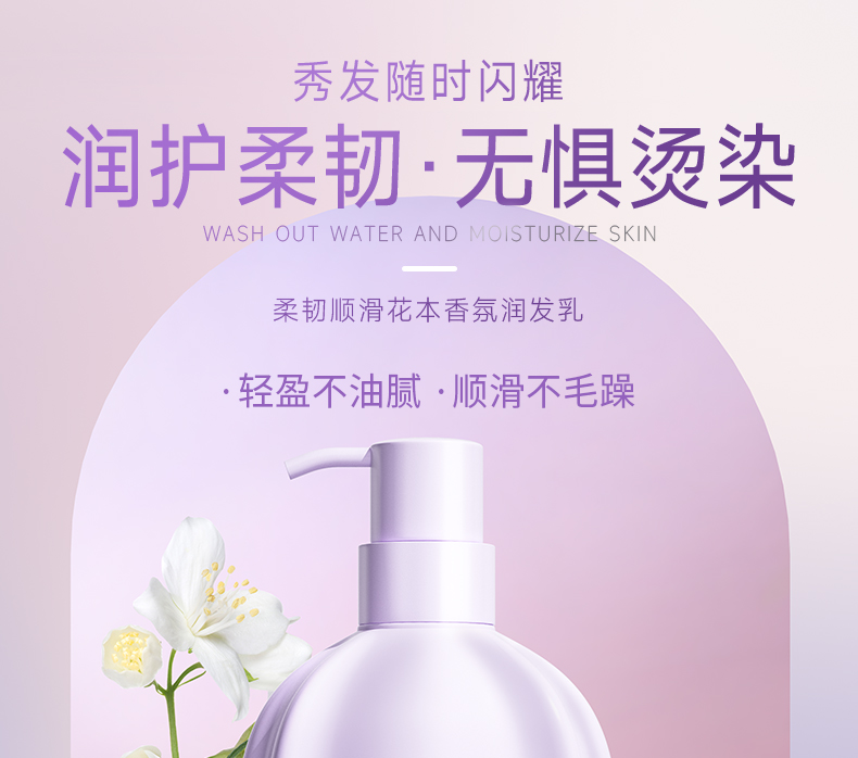 蘊含茉莉精油和維生素原B5*,深層潤養(yǎng)發(fā)絲,補水鎖水,撫順毛躁,改善粗糙發(fā)質(zhì),防斷韌發(fā),提升秀發(fā)柔順度,使秀發(fā)順滑有彈性,富含光澤。