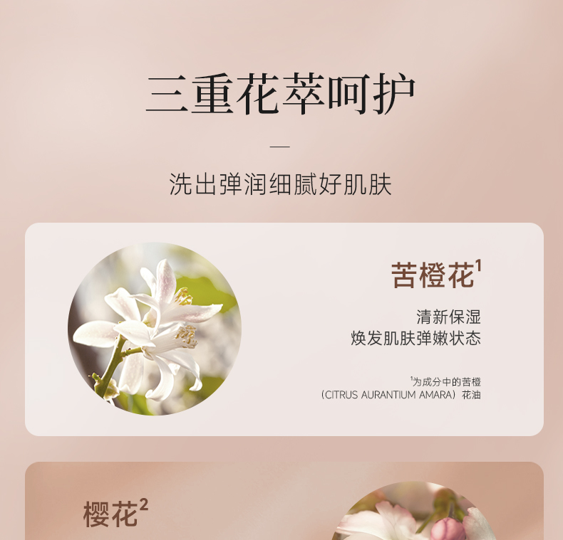 全新花本香氛洗發(fā)露,凝萃櫻花與木蘭香,甄選奢香,讓你仿佛徜徉于如夢似幻的鮮花海洋,芬芳馥郁,柔軟空靈,令人身心愉悅。