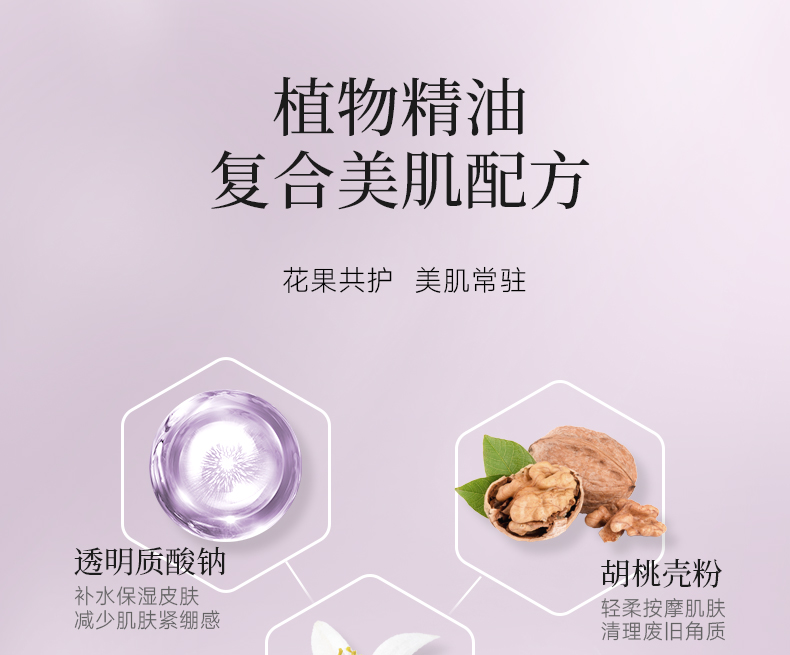 豐富核桃磨砂粒子配合乳木果精華,添加橙花精油與檸檬精華,深層清潔去角質(zhì),提升肌膚含水量,清爽舒潤(rùn)肌膚的同時(shí)細(xì)嫩肌膚,改善粗糙膚質(zhì),令肌膚重現(xiàn)細(xì)滑柔嫩。